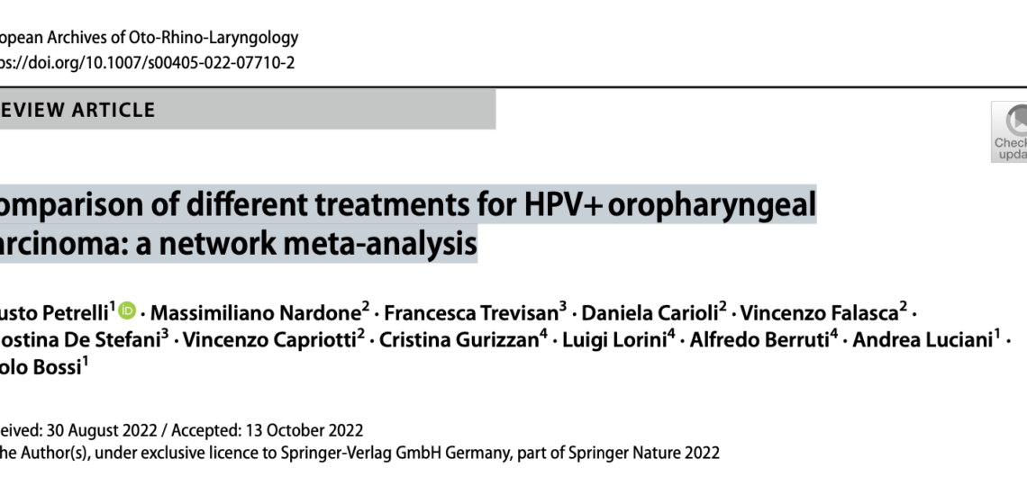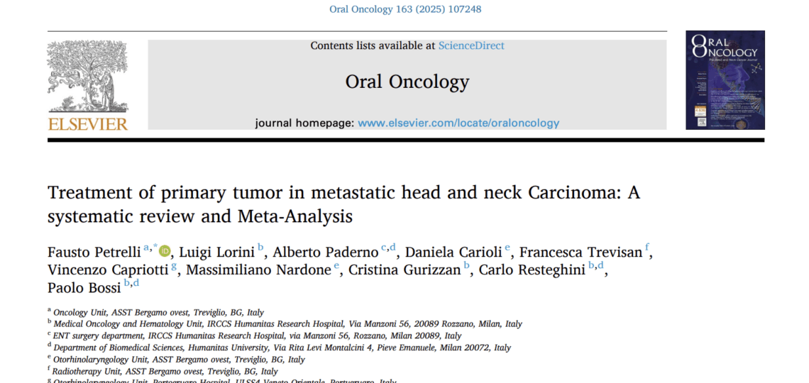 ULTIMI ARTICOLI Uncategorized Non-cisplatin concurrent agents plus definitive radiotherapy for locallyadvanced head and neck cancer Settembre 23, 2025 Uncategorized Treatment of primary tumor in metastatic head and neck Carcinoma: Asystematic review and Meta-Analysis Settembre 23, 2025 Uncategorized Human papillomavirus infection and non‑oropharyngeal headand neck cancers: an umbrella review of meta‑analysis Settembre 23, 2025